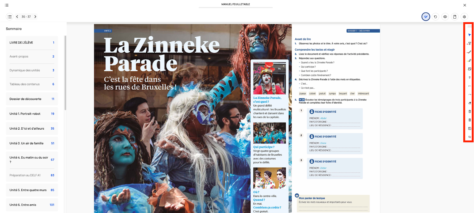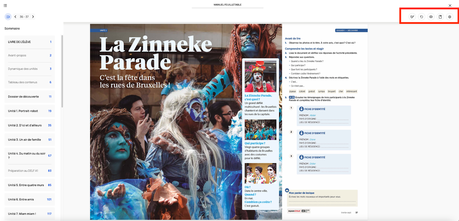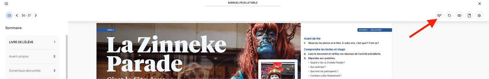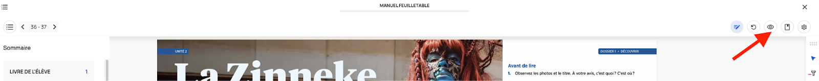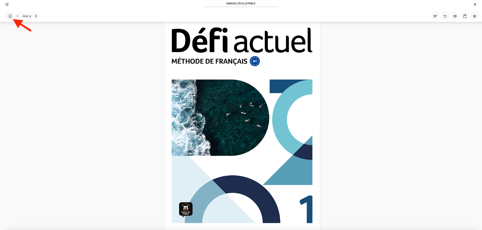 Para acceder al manual digital, haz clic en LIVRE/MANUEL FEUILLETABLE (según la colección) y después en el nombre de tu manual.