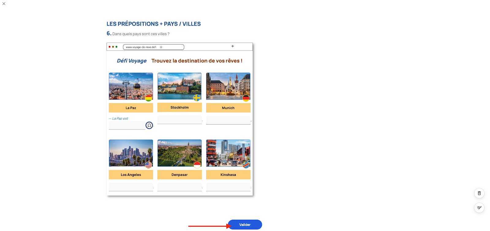 Después del primer intento, haz clic en Validar/Valider y luego en Revisar las respuestas/Examiner les réponses.