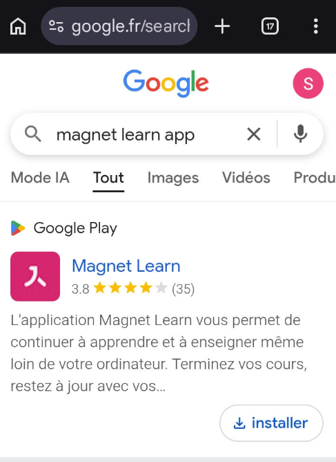 1. Ouvrez l'App Store ou le Play Store sur votre dispositif mobile et recherchez « Magnet learn app ». Téléchargez l'application « Magnet Learn ».