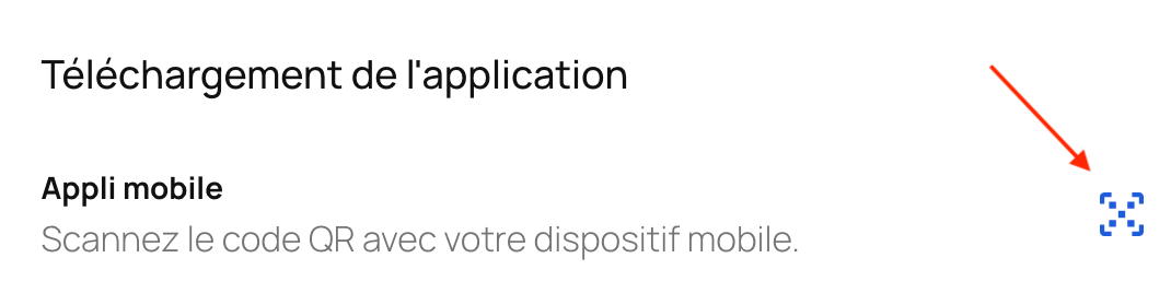 Recherchez la section « Téléchargement de l'application » et cliquez sur l'icône QR.