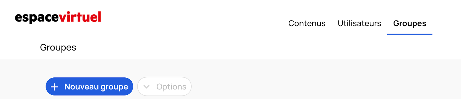 Pour créer un groupe, vous devez entrer dans l'onglet « Groupes » et cliquez ensuite sur « Nouveau groupe » ( si vous n'avez pas encore de groupe créé) ou « + Nouveau groupe » en haut à gauche.