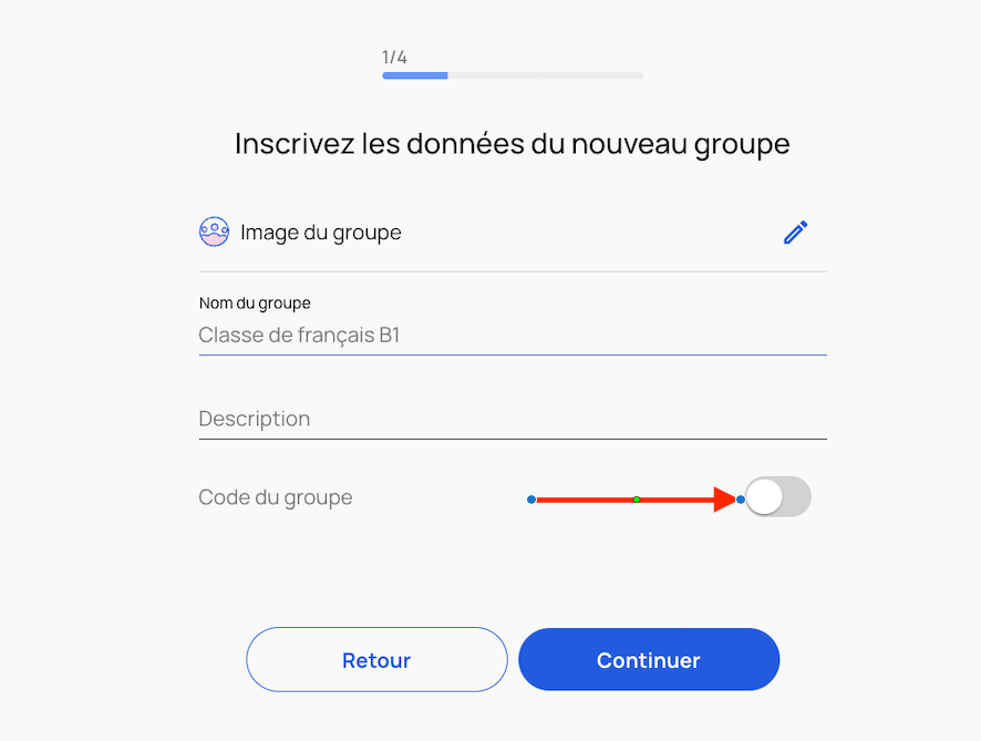 Nous vous recommandons de cliquer sur l’interrupteur pour activer le code de groupe, car vous en aurez besoin plus tard pour le partager avec vos élèves.