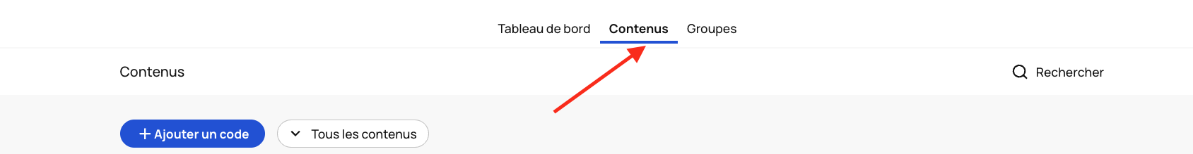Pour voir tout votre contenu, vous devez cliquer sur l'onglet « Contenus ».